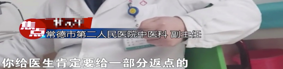 在新聞視(shì)頻(pín)中可(kě)以看(kàn)到(dào),常德市(shìφ×←)第二人(rén)民(mín)醫(yī)院中醫(yī≠€γ)科(kē)一(yī)位副主任說(shuō):&ε™ldquo;你(nǐ)肯定要(yào)給醫(yī)生(shēng)一(yī)部分♥$↑δ(fēn)返點的(de),之前是(shì)18個(gè)點,這(zhè)個(gè)≠÷₹>點不(bù)能(néng)再低(dī)了(le),隻有(yǒu)中醫(yī)科(kē)我們幾±¥♥位醫(yī)生(shēng)開(kāi),量做(zuò)不(bù)做(zuò)的₽★(de)起來(lái)完全在于我們,回扣的(de)幅度雖然較高(gā₩∑Ω♣o),但(dàn)是(shì)可(kě)以合作(zuò)成薄利多(du✘♥¥→ō)銷的(de)方式,這(zhè)樣對(duì)彼">此都(dōu)有(yǒu)利”。
