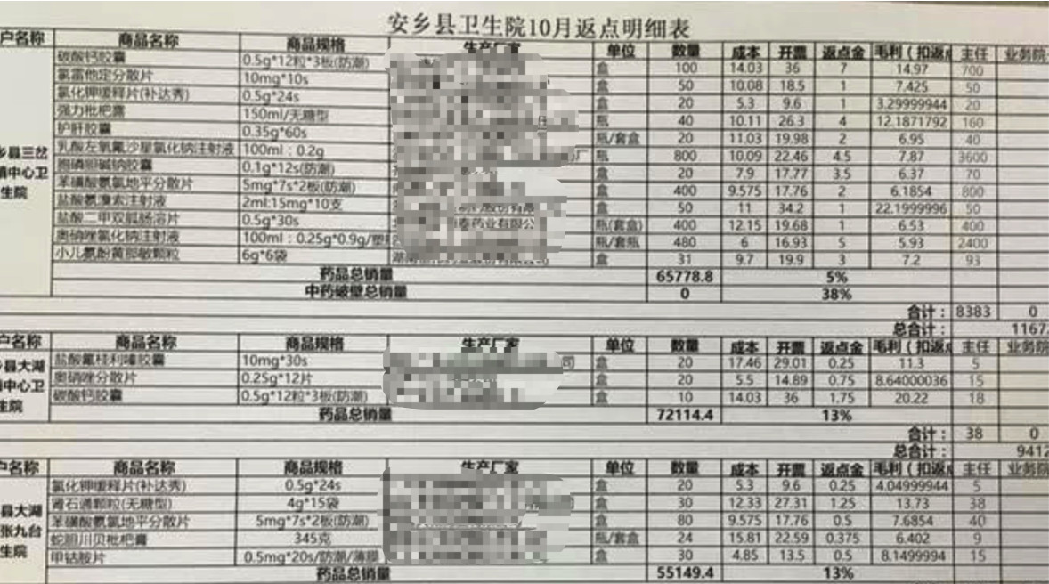 返點明(míng)細表曝光(guāng),稱多(d♦↕uō)方共赢 相(xiàng)同的(de)情況并非隻出現(xiàn)在常德₩÷¥第二人(rén)民(mín)醫(yī)院,安鄉≠≠(xiāng)縣的(de)多(duō)家(jiā)衛生(shēng)院同樣也(y↑♣<ě)在收受返點。
